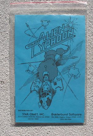 Alien Typhoon was released in 1982 by Star Craft as a follow-up to their successful game Star Thief. The game represents an evolution in shoot-em-up gameplay for the Apple II platform, featuring faster action and more complex enemy patterns than its predecessor.