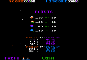 The game includes a high score table that saves the top ten scores, creating competition among players. This feature was standard for arcade games but less common in home computer games of the period.