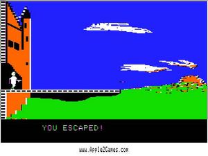 The Apple II version used simple graphics with stick figure characters and basic room layouts. Despite the simple visuals, the game created tension through its sound effects and gameplay. Opening chests took time and made noise that could alert guards. You had to hold down keys to search, adding risk to every action.