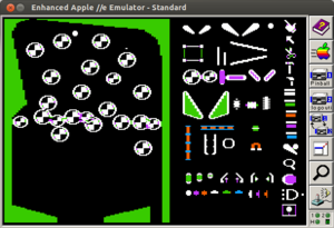Flippers came in two sizes small & large and both left & right were controlled by the joystick or apple symbols on later Apple computers. Here again changing the wold physics would effect how the flippers worked and how the ball reacted to the flippers. There are also slingshots which worked very similar to the bumpers except these looked like walls. Typically on real pinball machines these are down towards the bottom and have the flippers attached to them. Finally there was the gravity hole or ball eater.